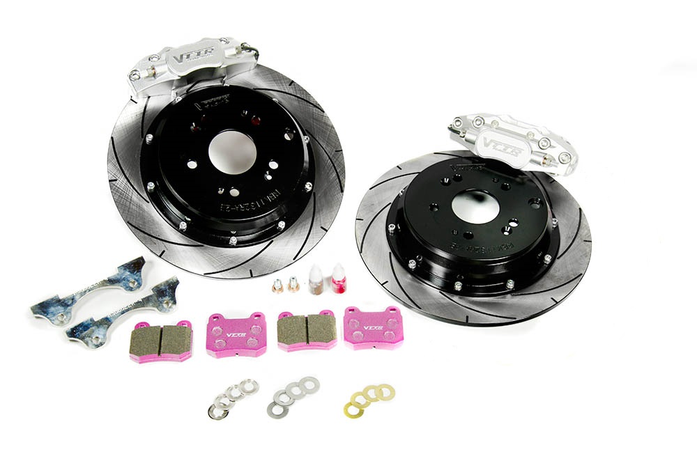 18吋鋁圈以上才能安裝,對應動力提昇改裝加強之車種足堪大任,可搭配後小六355mm*24mm卡鉗套件組,提昇剎車安全。 碟盤尺寸:355mm*32mm鑽孔/劃線碟盤 卡鉗本體材質:6066鋁塊鍛造