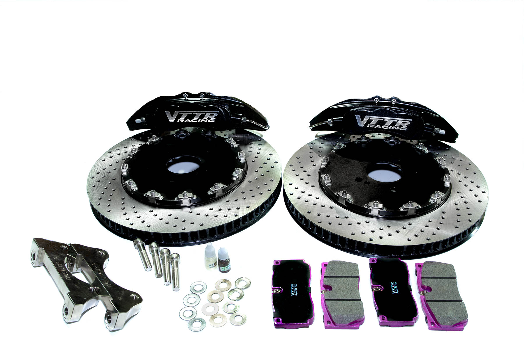 17吋鋁圈以上才能安裝,可對應一般動力提昇之車種,可搭配後小六330mm*23mm卡鉗套件組,提昇剎車安全性能。 碟盤尺寸:330mm*30mm鑽孔/劃線碟盤 卡鉗本體材質:6066鋁塊鍛造